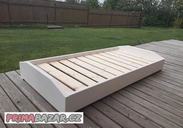 Prodám postel o velikosti matrace 90x190 cm. Výška 25cm. Materiál smrk masiv. Vhodná i pro malé dítě vzhledem k výšce 25cm od podlahy.