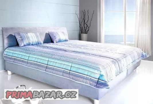 Postel Bali 180x200 cm, modro-šedá látka, s matracemi