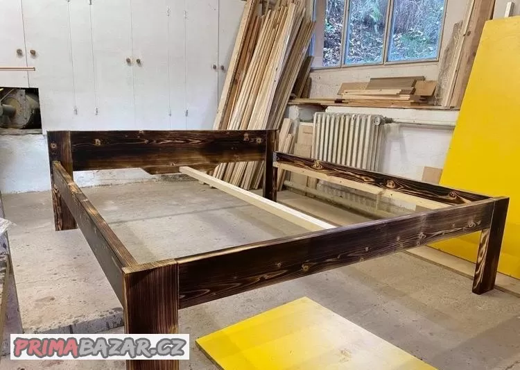 Prodam postel z pravého dřeva borovice, opaleny povrch. Rozměr 200x180. Původní cena u truhláře 7.000,-
