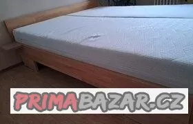 prodám postel buk/masiv, tloušťka prken 2,5 cm, rozměr 160 x 200 cm, výška 32 cm - bez matrací, postel je včetně nočních stolků - viz foto, vyztužená, pevná, bez matrací a roštů, velmi pěkný stav, cena 4900,-
