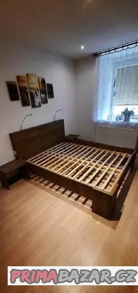 Prodám postel vedde (divoký dub) na matraci 200x160 postel původně z jysku s menší úpravou viz foto. Noční stolky byly dělané na robotický vysavač, vestavěně zásuvky plus led lampičky, celkové rozměry postele délka-215cm a šířka i se stolky -cca 270cm matrace je k postely také,pouze vlastní odvoz dá se rozebrat,při rychlém jednání přidám navíc i osvětlené zrcadlo také v divokém dubu,pouze volat nebo sms