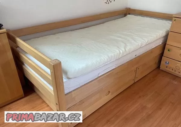 Prodám jednoluzko z masivu zn. Domestav, klasicky rozměr 200X90cm se zabranou a také jeste s boční zabranou.