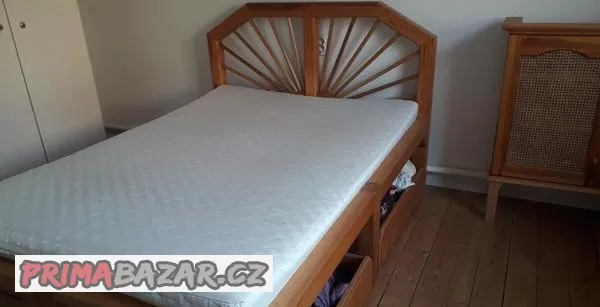 Prodám masívní postel s 4 šuplíki pod postel s matrasem , dil. 2.10 m šir. 1,50 m vyš. 0,50 m. Nabízím montaž posteli na určené místo ( pro pripad že by se muselo rozebrat kvuli doprave) .
