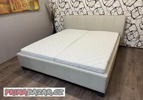 Postel MONZA s úložným prostorem, cena je za komplet RÁM+ROŠT, možno dokoupit matraci (3.500Kč), ÚLOŽNÝ PROSTOR, zvedací rošty, čalouněný rám, barva čalounění béžová, nohy tmavě šedé, rozměr lůžka 180x200cm, materiál rámu dřevotříska potažená čalouněním, rozměry: délka 220 cm, šířka 192 cm, výška 95cm. Nová, nepoužívaná, , možno prohlédnout v našem showroomu na Praze 7. Původní cena za celý komplet 25.990,-Kč.