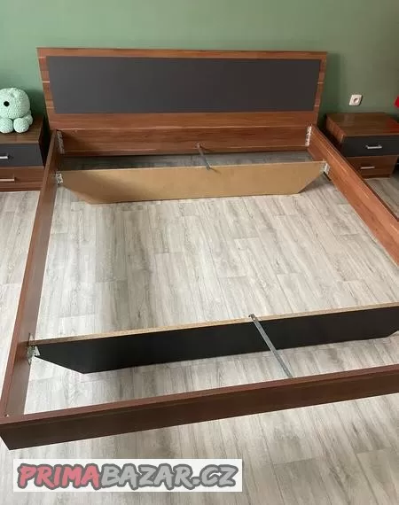 Dvoulůžkova postel 180x200cm (bez roštu a matrace). 2x noční stolek.