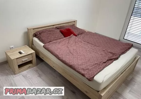 Prodám postel 160x200cm a 2 noční stolky. Postel je s roštem, bez matrace, rozebraná.