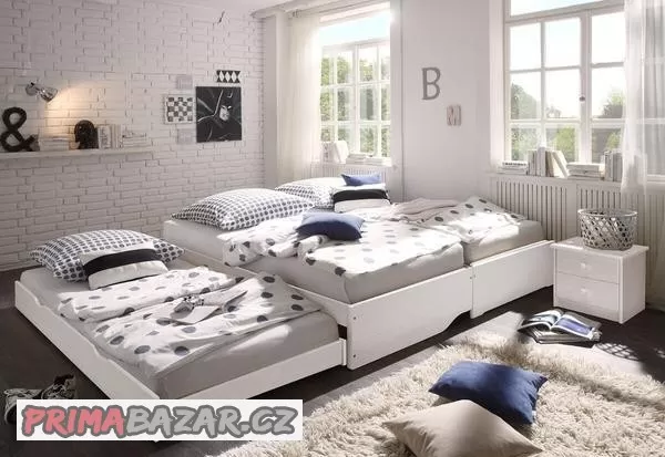 Postel rozkládací multifunkce masiv včetně matrací a roštů