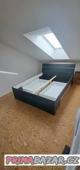 Prodám posel s LED osvětlením dub/montana/grafit 160x200cm s úložným prostorem, včetně matrací a roštu.