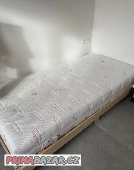 Prodám postel 100x200 z masivu (smrk) se zdravotní matrací. Postel zakoupena duben 2023, matrace březen 2023. Velice málo používané, jako nové. cena nové postele 2619kč, cena nové matrace 12420kč.