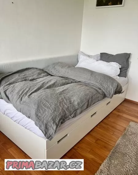 Prodám rám postele i s matrací a čalouněným čelem šedé barvy. Postel byla vyrobena přímo na míru z velmi kvalitního materiálu. Postel má také dva velké vysouvací úložné prostory. Rám postele je jako nový, matrace používaná, ale stále se na ní dá skvěle vyspat:)