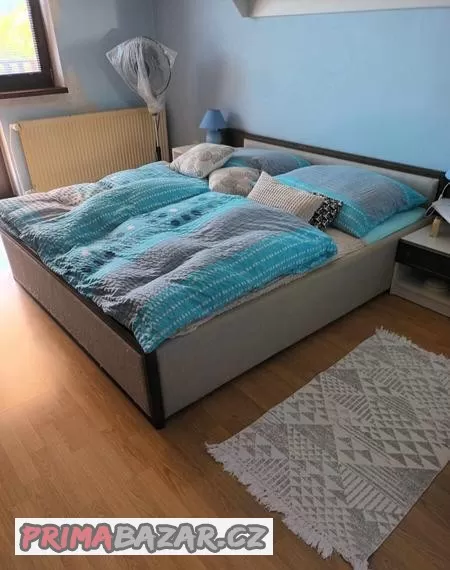 Přenechám za odvoz postel s úložným prostorem. Rozměr: 180 x 200 cm. Rám je dřevěný. Boční strany a čela jsou z látky. Přenechám bez matrací. Látka je vybledlá. Postel je ve velmi dobrém stavu