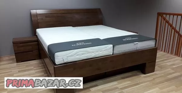 Nabízíme k prodeji dvojlůžko Sofia s oblým plným čelem v bukovém masivu- v barevném moření Ořech B3/4. Rozměr lůžka: 180x200 cm. Součástí sestavy je také 2x výsuvný úložný prostor (cca 90x145 cm), 2x pevný laťkový rošt a 3x noční stolek (1x jednozásuvkový, 1x dvouzásuvkový a 1x závěsný "elko"). Vše ze stejného materiálu jako postel.