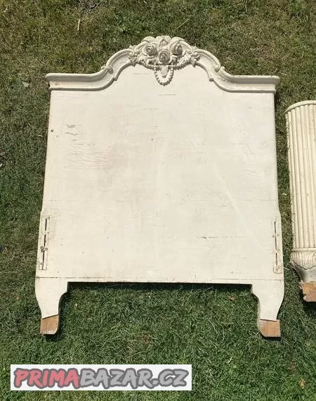 jedná se o dvě čela starožitné dřevěné postele zdobené řezbou velmi zajímavý základ na krásnou stylovou postel - dříví je v pěkném stavu - cena 1800,-