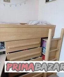 Prodáme pěknou vyvýšenou postel vč. zánovní zdrav.matrace.Postel je vyrobena na zakázku v rozměrech: 202x86 a 138cm výška. Spoustu úložného prostoru (i za žebříkem).Cena: 4900,-