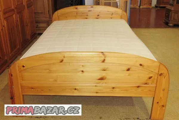 Výborný stav.Rozměry V x Š x H: 72 cm X 132 cm X 206 cm. borovice - lakovaná...Plocha na spaní 120 x 200 cm. Cena bez matrace 4500 kč. Fleky jsou z foťáku. Možno rozmontovat...Moznost dopravy na trase HK - Praha - Plzen ...v pripade zajmu zaslete v emailu tel kontakt na Vas !!! Zajistujeme dopravu po cele CR přes přepravní firmu.