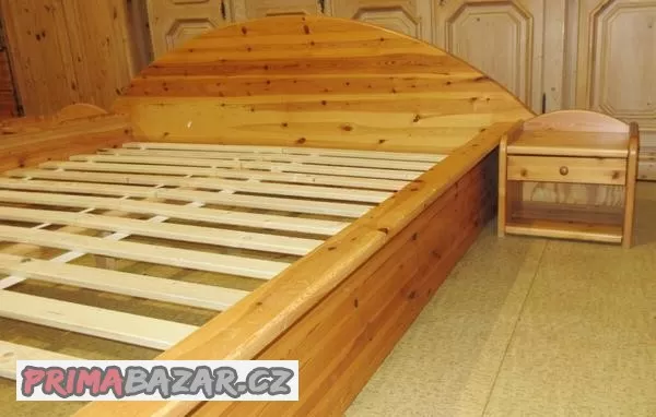 Postel z borovice s rošty + noční stolky - celomasiv