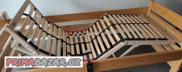 Prodám vyvýšenou postel z masivu a polohovací rošt.Rozměr postele je 200x80 cm,výška od podlahy po rošt 45cm.Možné prodat jednotlivě.