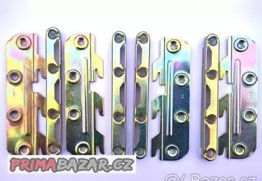Sada kování pro postelové spoje obsahuje 2x levý hřeben, 2x pravý hřeben a 4x skříňku.