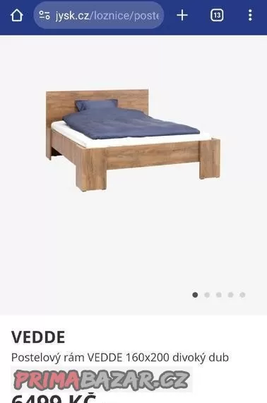 Prodam 3 roky stary postel.ram Vedde, koupeny v Jysku. Velmi zachovaly, maximalne stabilni. Zesilena stredova podpera. Odreny pouze viz foto a ze zadni strany je odrena dyha primo na hornim rohu cela, cca 2x3 cm. Jinak bez poskozeni. V jednom prkynkovem rostu chybi jedna latka. Prodam samostatne nebo vcetne jedne matrace. Matrace 80x200 Tropico, stredne tvrda, tvrda, pouzivana cca 4 mesicr. Neprolezela, neposkozena, nezaspinena. Cena matrace plus 3 tis. k cene ramu. Odvoz nutny. Rozmontuju, pripravim.