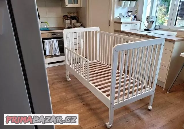 Postýlka používaná, plně funkční, nenese zjevné známky opotřebení. Postýlka je opatřena kolečky.