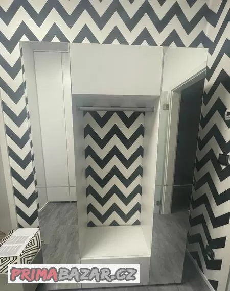 Předsíňová šatní komoda, bílá + zrcadlo, zánovní