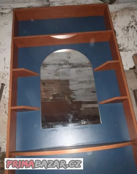 Prodám tuto stěnu se zrcadlem, rozměry cca výška 200cm, šířka 100cm. Kadeřnická obsluha, poličky police kadeřnictví chodba