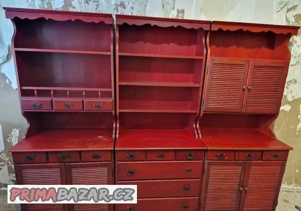 Prodám příborník s nástavcem ve 3 provedeních v červené barvě,vhodný k částečné rekontrukci, nese známky užívání. Vlastní doprava.