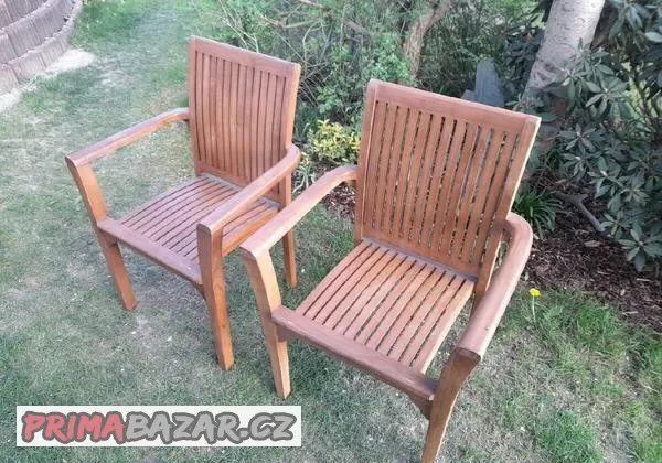 Prodam 2ks židlí z teakového dřeva cena 1200kč za obě.
