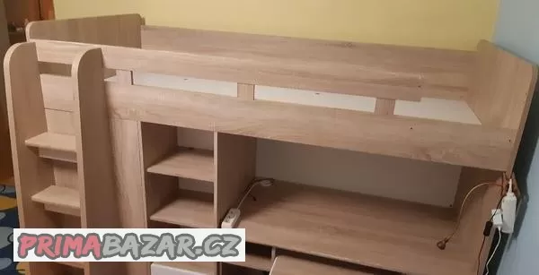 Prodám dětskou patrovou postel 3v1 dub sonoma-bílá