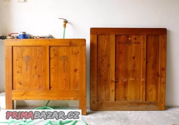 Sleva Prodám dřevěný nábytek vhodný na chalupu - 2 x postel, 2 x noční stolek, skříň, stůl a 2 x židle.