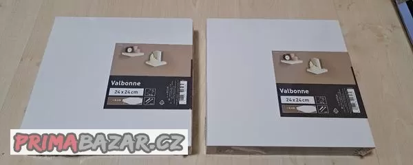 Prodám dvě nové, ještě nevybalené bílé poličky dle foto 24x 24 cm, výška 4 cm a nosnost do 20 kg -neviditelná montáž na zeď.