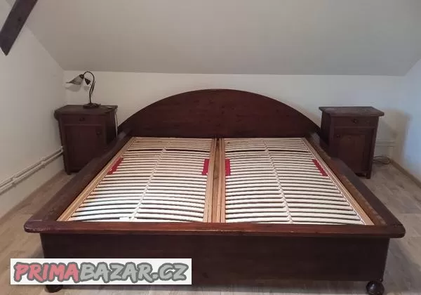 Kvalitní, pevná, masív. Polohovatelné rošty, rozměr 200 x 200 cm. Rozebraná, připravená k odvozu ve Zruči nad Sázavou.