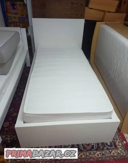 Prodám krásnou postel IKEA MALM 90 x 200 cm.Kompletní včetně lamelového roštu a kvalitní sendvičové matrace zn.LUMATEX s pratelným antialergickým potahem na zip s větracím pásem-čerstvě vypraný.Bytelné provedení,vysoká nosnost postele.Viz foto.Mrkněte na mé jiné nabídky.Doprava zajištěna