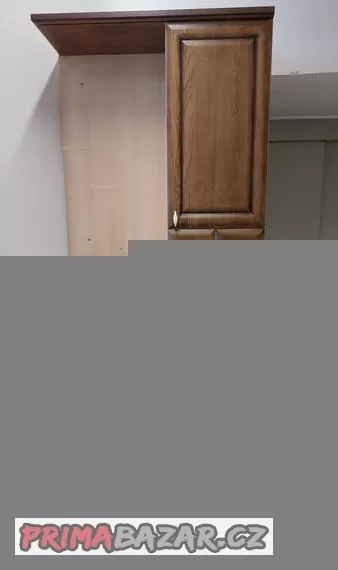 Horní skříňka,kde se mohou doplnit police a dva malé šuplíky na koření ,kávu či jiné drobnosti.Nahoře je ukončená rampou.Mateiál na pracovní desce je umělý kámen Polyston.Kuchyňka je na kolečkách s pevným kovovým rámem.Vhodná na chatu či klubovnu nebo dílnu k přípravě jídla a pod.