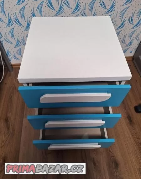 Prodam dětský noční pojízdný stolek, barva tyrkysová/ bílá