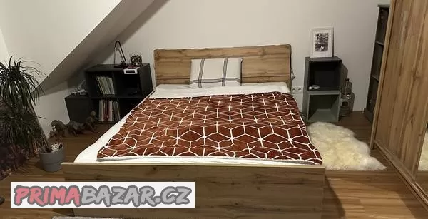 Prodám postel a šatní skříň v dekoru Dub Wotan