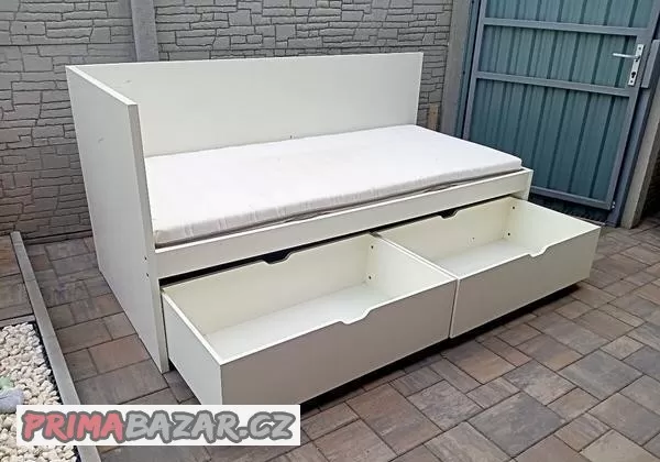 Prodám postel IKEA ODDA 90cm x 200cm s dvěma výsuvnými šuplikami, včetně matrace. Postel nese známky používání má nějaký škrábance, ale v celém je v dobrém stavu, konstrukce je pevná. Postel je rozmontována, připravená k odvozu. Podívejte se na mé další inzeráty.