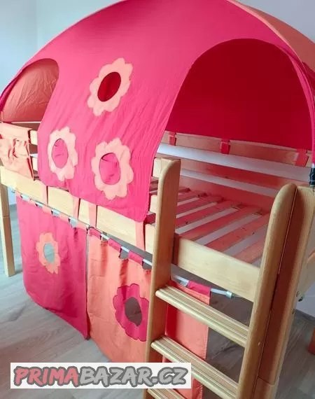 Prodám dvě vyvýšené postele, které se mohou snížit na zem. Se schůdky nahoru. S nebesy a záclonkami. Cena za jednu postel 2 490 Kč. Možnou koupit jen jednu.