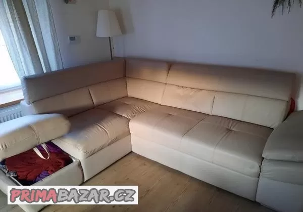 Prodam rozkladaci rohovou pohovku. 217x270 cm. Bezova barva, imitace kuze,pohodlna. Polohovatelne operky, rozkladaci, ulozny prostor, omyvatelna. Velmi pekna,prostorna. PC 42 000,-.