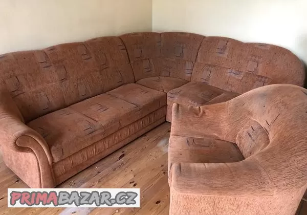 Prodám rohovou sedací soupravu s křeslem. Souprava má rozložitelné plnohodnotné lůžko.