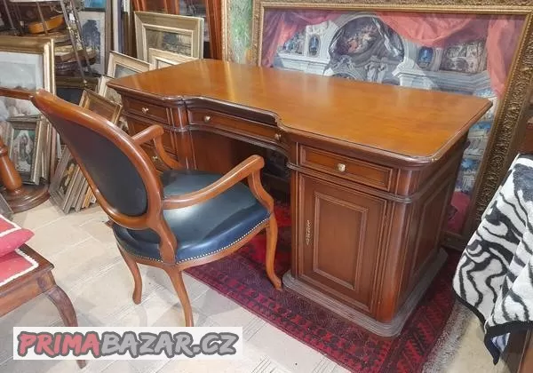 Jídelna s pracovnou a sofa s křeslem a stolek+komoda a věšák.