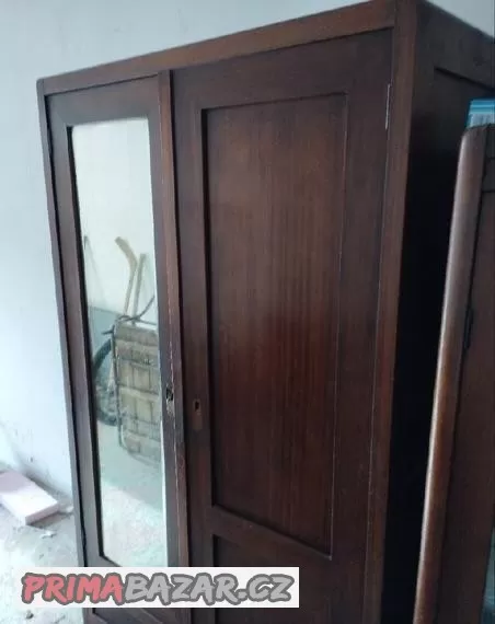 Prodám starou šatní skříň se zrcadlem, vyrobeno z tvrdého dřeva,bez známek napadení červotočem. Výška 1,9m , délka 1,16m , širka 0,48m .