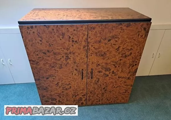 Prodám starší nábytek: 2 ks policové skříně s plnými dvířky, 1 ks bez dvířek, skříň dělená 2 ks, skříň vysoká dělená 1 ks, skříň šatní 1 ks, pracovní stůl 3 ks, stůl pod pc 1 ks, stůl kruhový 2 ks bez dvířek + 1 ks s dvířky, židle kov/kůže 2 ks, kontejner k prac. stolu, policové skříně otevřené - atyp, 2 ks. Vhodné např. jako výbava do garáže.