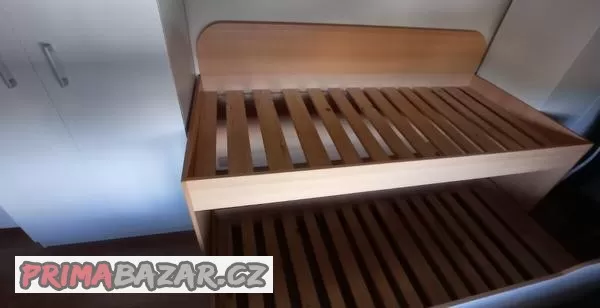 Prodám vyjizdeci dvou postel s úložným prostorem, dělaná na zakázku. Rozměry 204x94, výška 76. Úložný, velký prostor vevnitř. Matrace mohou být k tomu ( vyprané) potahy. Nové Město na Moravě.