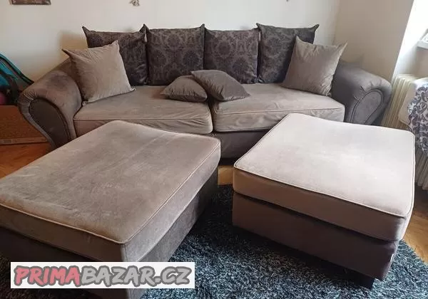 Prodám zánovní sedačku + 2 taburety na sezení