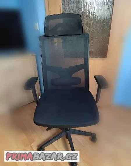 Židle je v dobrém stavu, dá se nastavit úplně všechno výška židle, výška opěradla, výška hlavové opěrky, hloubka sedáku, bederní opěrka.