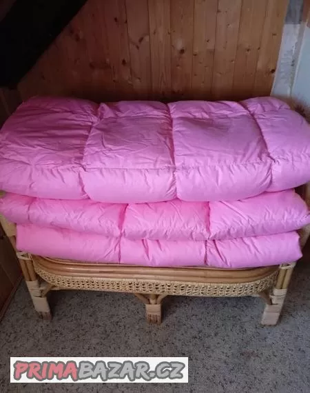 Prodám tři prošívané péřové deky. Prachové peří- nový sypek. Nepoužité.