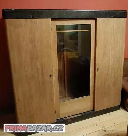 Prvorepubliková šatní skříň, částečně zrenovovaná, zajimavé montážní řešení spojů, rozebiratelné. K odběru v Teplicích. Rozměry: výška 179 cm, šířka 180 cm, hloubka 56 cm. Jedna tyč a jeden foch po celé délce. Cena 10000 Kč.