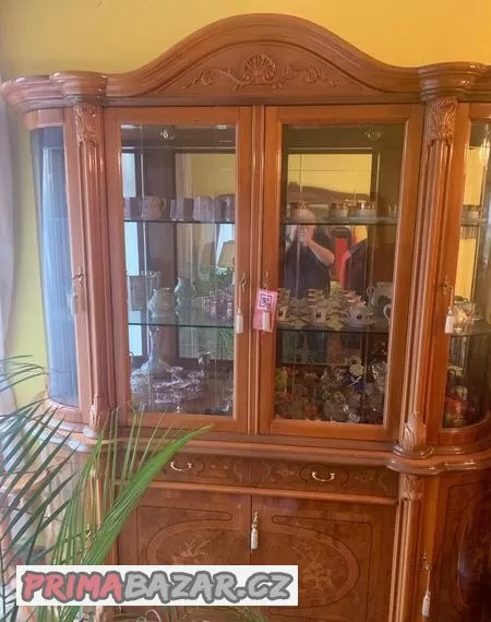 Prodáme zachovalou jidelnu vyrobce Itálie a to skleněnou komodu dále komodu se zrcadlem jídelní stůl 6 židlí. Kupovaná v Praze v roce 1998.