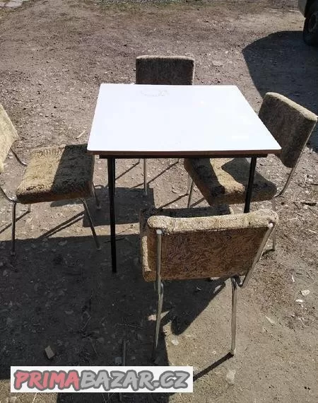 Použité, čalounění v pořádku, stůl 80x80, celkem 8 setů